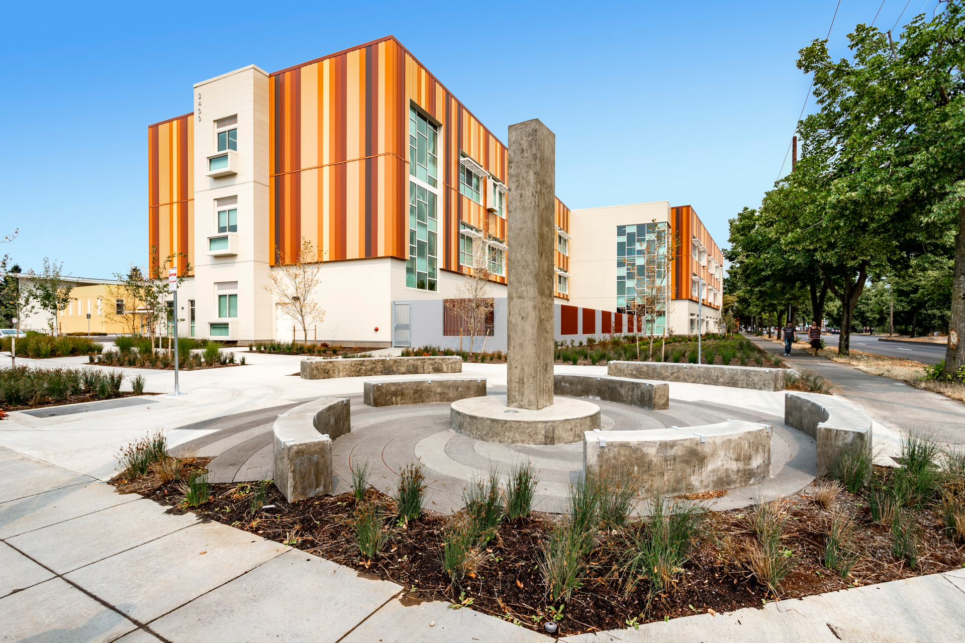 Examples can be found in the New Bridge High School in Grant's Pass, the Career and Technical Education Building at Woodburn High School. The biophilic aspects of these projects are displayed to give occupants a sense of calm, connectivity, and curiosity through "building-as-curriculum" features.